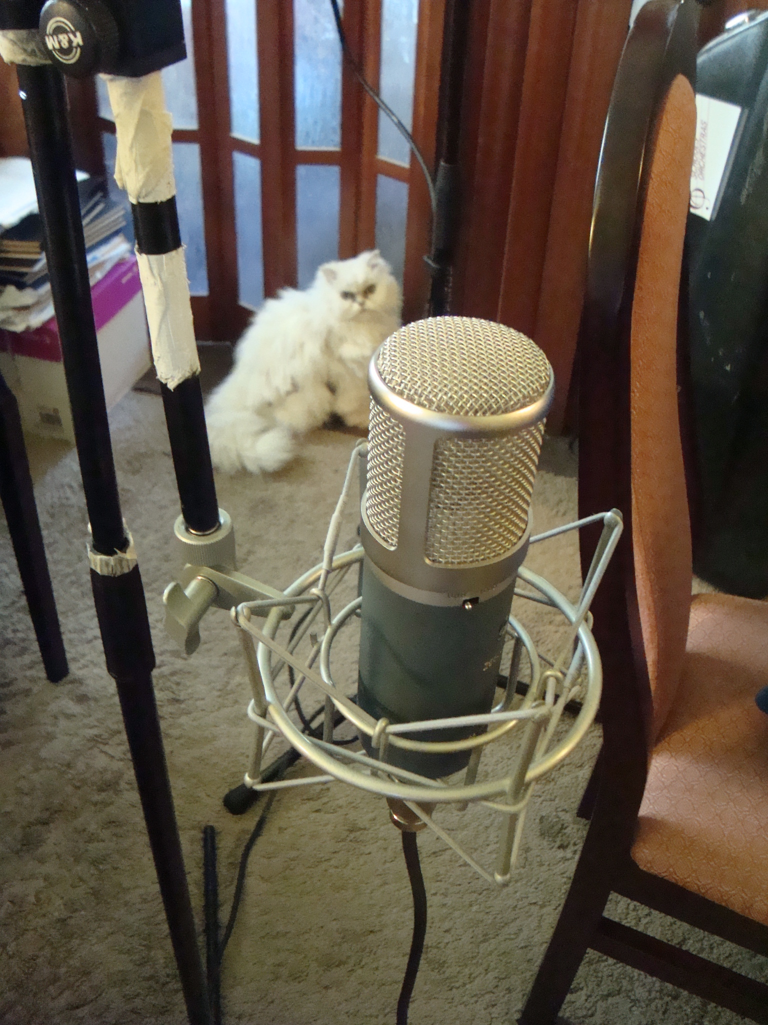 This was about a week ago, when Dave’s family were kind enough to let us take over their living room for a couple of days. Mabel the cat has also been involved, and even accidentally got herself recorded when she couldn’t find her way out of the room and yowled at the end of a take. We’re still deciding if we should keep that on the track…